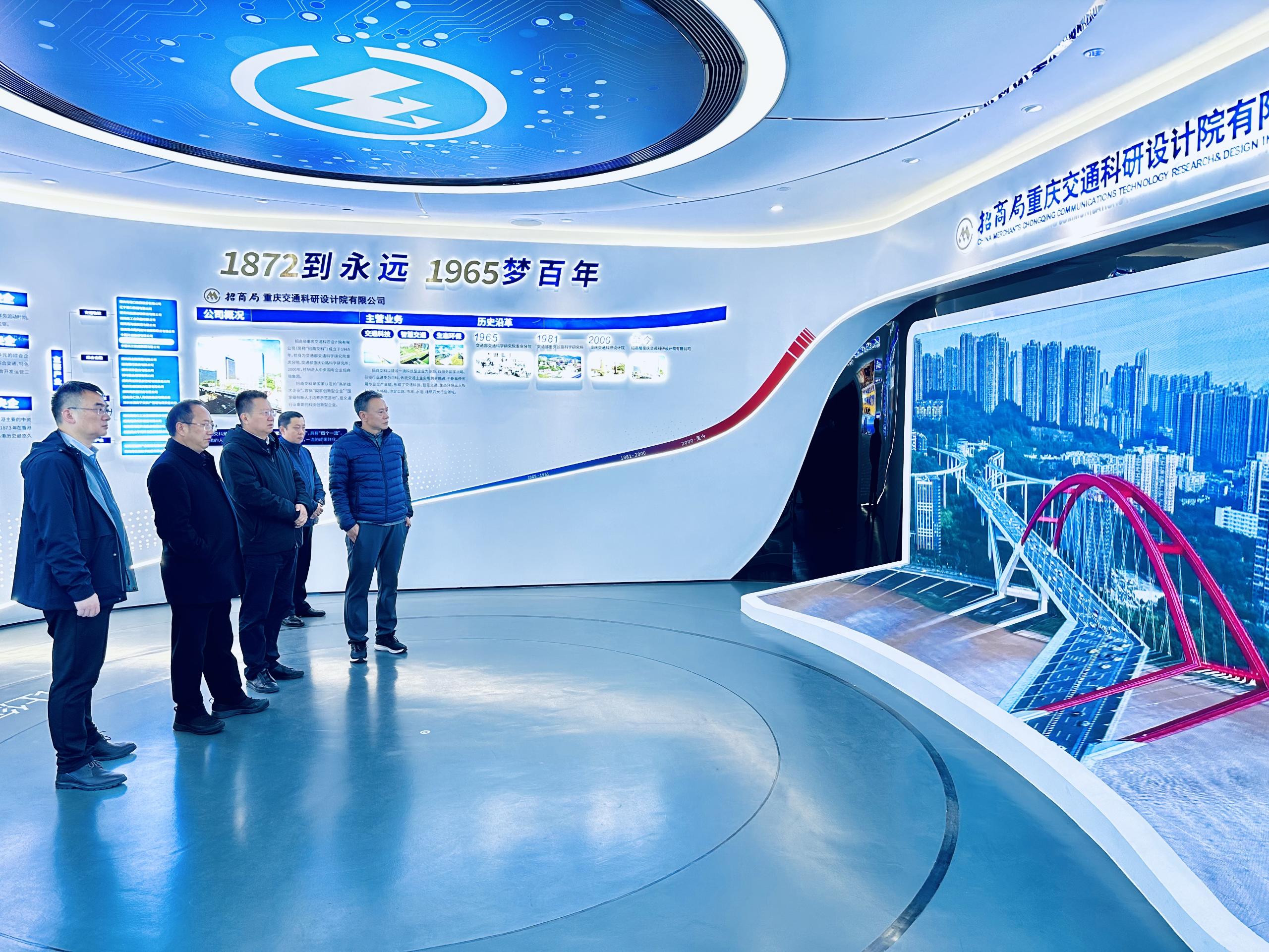 期间,杨国峰陪同来宾一行调研招商交科科技展馆,介绍公司科技创新成果及应用情况。