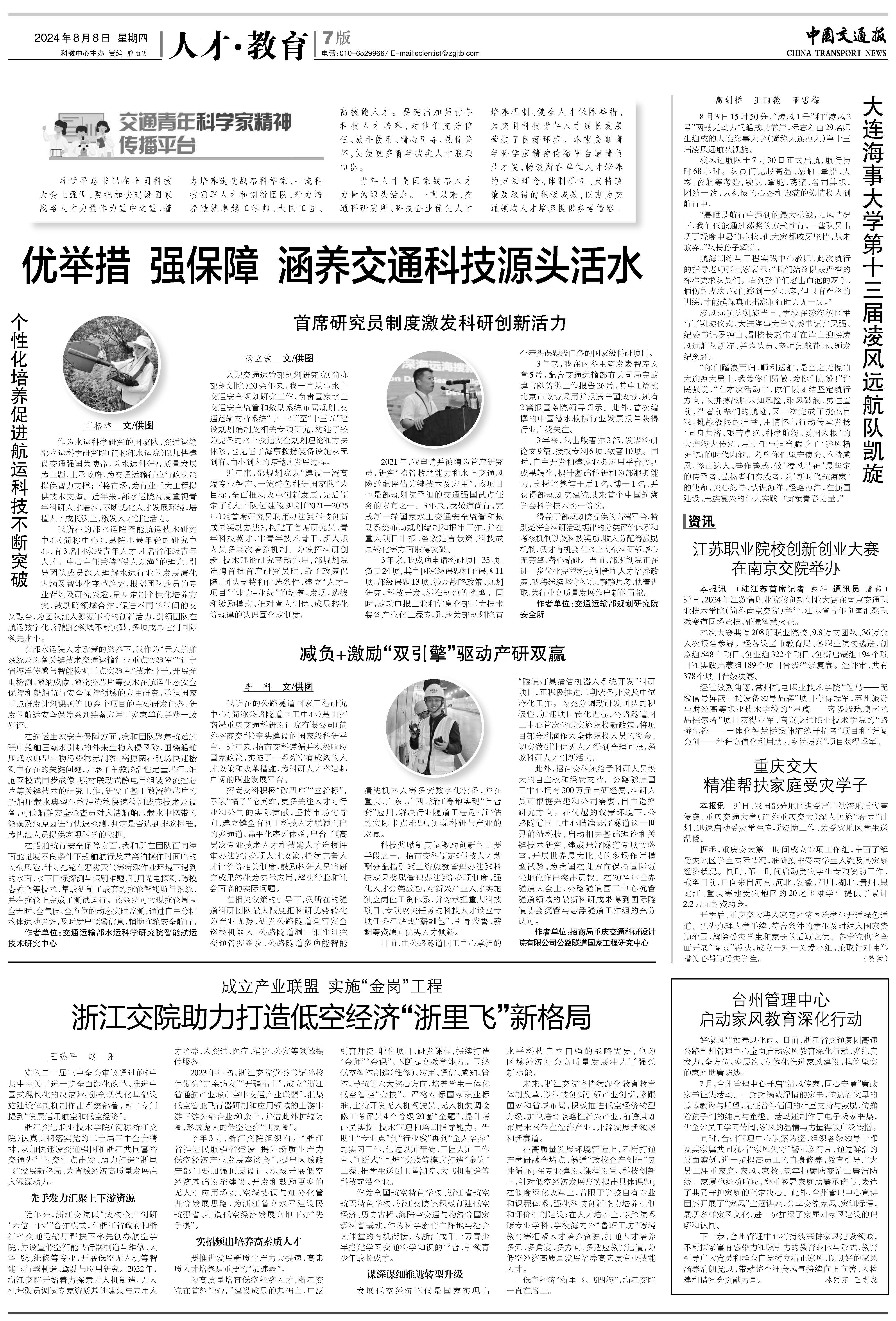 8月8日,《中国交通报》在第七版“人才·教育”专栏中,以《减负+激励“双引擎”驱动产研双赢》为题,刊发了招商交科公路隧道国工中心李科研究员的署名文章,谈到了招商交科在人才政策与激励机制上的创新举措。面对“破四唯”“立新标”的时代要求,招商交科聚焦人才的实际贡献与行业价值,通过建立健全多通道、扁平化的序列体系,以及出台一系列合理的人才政策,为科技人才搭建广阔的职业发展舞台,激发科研人员的创新活力与潜能。现将全文转载如下:
